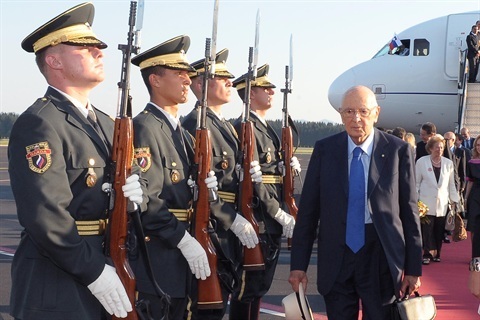 Il Presidente Giorgio Napolitano al suo arrivo all'Aeroporto "Joze Pucnik" in occasione della visita di Stato nella Repubblica di Slovenia