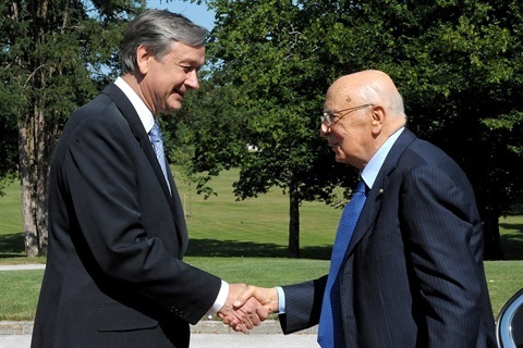 Il Presidente Giorgio Napolitano accolto dal Presidente della Repubblica di Slovenia Danilo Turk, al Castello di Brdo