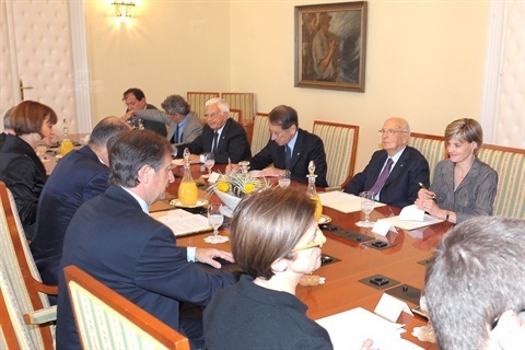 Il Presidente Giorgio Napolitano con il Primo Ministro della Repubblica di Slovenia Janez Jansa durante i colloqui in occasione della visita di Stato