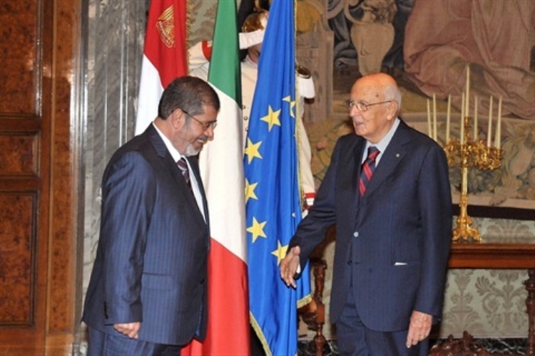 Il Presidente Giorgio Napolitano con il Presidente della Repubblica Araba d'Egitto Mohamed Morsi