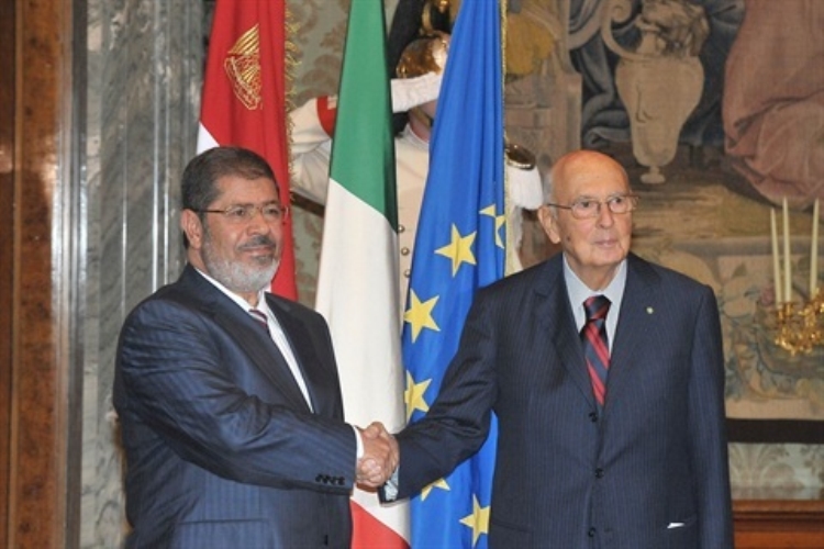 Il Presidente della Repubblica Giorgio Napolitano con il Presidente della Repubblica Araba d'Egitto Mohamed Morsi