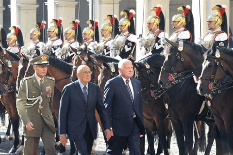 Il Presidente Giorgio Napolitano con il Presidente della Repubblica Ceca Sig. Václav Klaus, durante la cerimonia di benvenuto