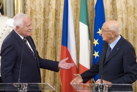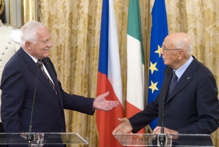 Il Presidente Giorgio Napolitano e S.E. Vaclav Klaus, Presidente della Repubblica Ceca, al termine delle dichiarazioni alla stampa