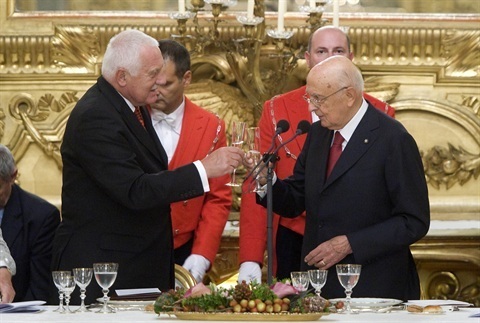 Il Presidente Giorgio Napolitano e il Presidente della Repubblica Ceca Vaclav Klaus in occasione del pranzo di Stato