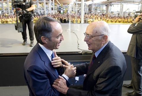 Il Presidente Giorgio Napolitano saluta Nerio Alessandri, Presidente della Technogym, al termine del 20° Welness congress tenutosi nella sede della Technogym