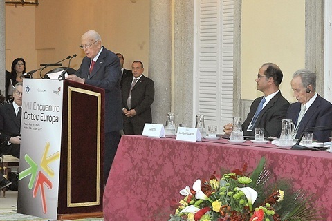 Il Presidente Giorgio Napolitano durante il suo intervento in occasione del VIII Simposio Cotec Europa