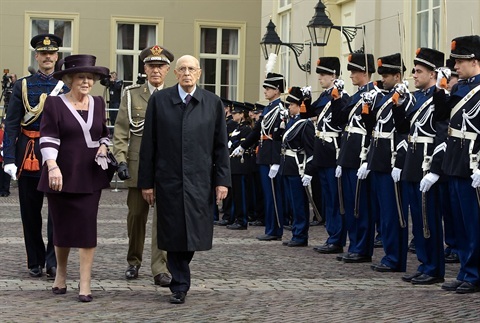 Il Presidente Giorgio Napolitano e S.M. la Regina Beatrix nel corso della cerimonia di benvenuto a Palazzo Noordeinde