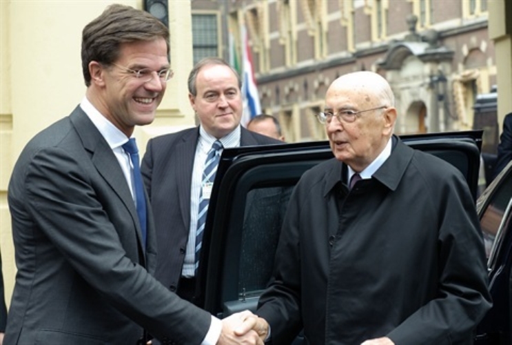 Il Presidente Giorgio Napolitano accolto dal Primo Ministro dei Paesi Bassi Mark Rutte