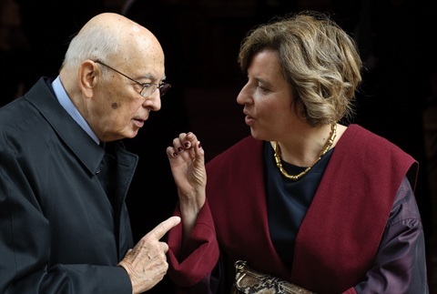 Il Presidente Giorgio Napolitano con il Segretario Generale dell'Istituto Italiano per gli Studi Storici Marta Herling-Grudzinski