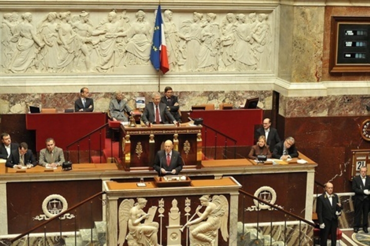 Il Presidente Giorgio Napolitano nel corso del suo intervento all'Assemblea Nazionale francese