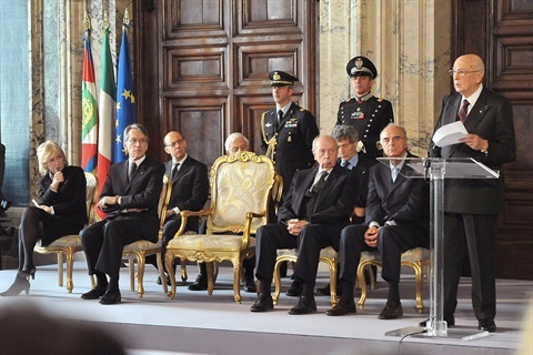Il Presidente Giorgio Napolitano durante il suo intervento in occasione della presentazione degli auguri di Natale e Capodanno da parte del Corpo Diplomatico