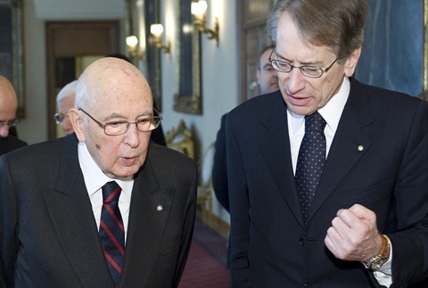 Il Presidente Giorgio Napolitano con il Ministro degli Esteri Giulio Terzi di Sant'Agata, in occasione della presentazione degli auguri di Natale e Capodanno al Capo dello Stato