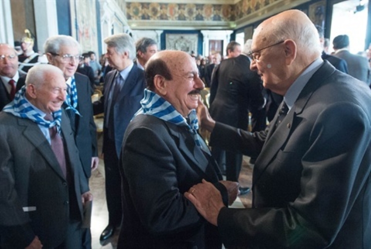 Il Presidente Giorgio Napolitano saluta alcuni ex internati e deportati che hanno partecipato alla celebrazione del "Giorno della Memoria"