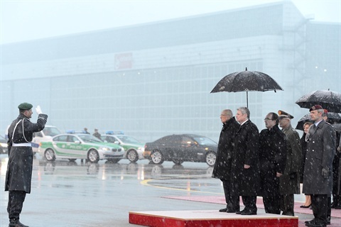 Il Presidente della Repubblica Giorgio Napolitano al suo arrivo a Monaco di Baviera è accolto dal Presidente della Repubblica Federale di Germania, Joachim Gauck