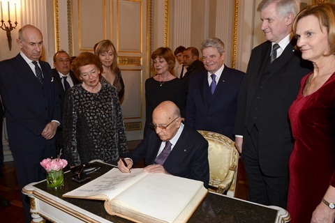 Il Presidente della Repubblica Giorgio Napolitano alla Staatsoper firma il Libro d'Oro