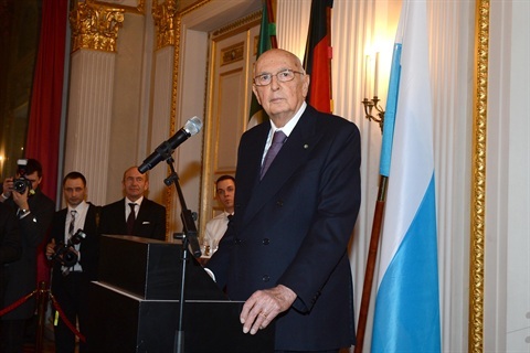 Il Presidente della Repubblica Giorgio Napolitano durante l'incontro con i "pensatori" tedeschi dedicato ai temi europei