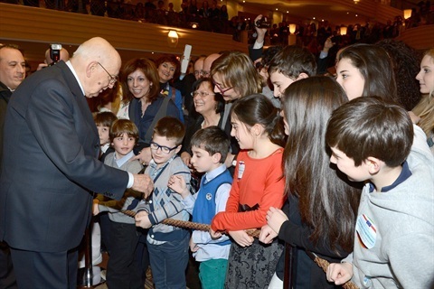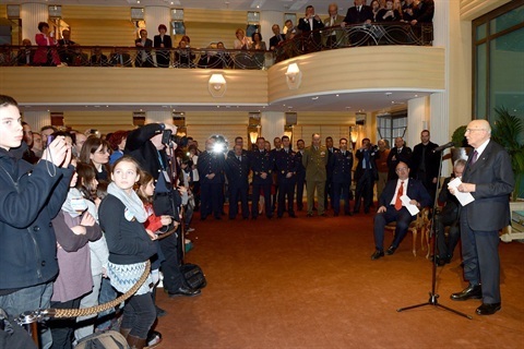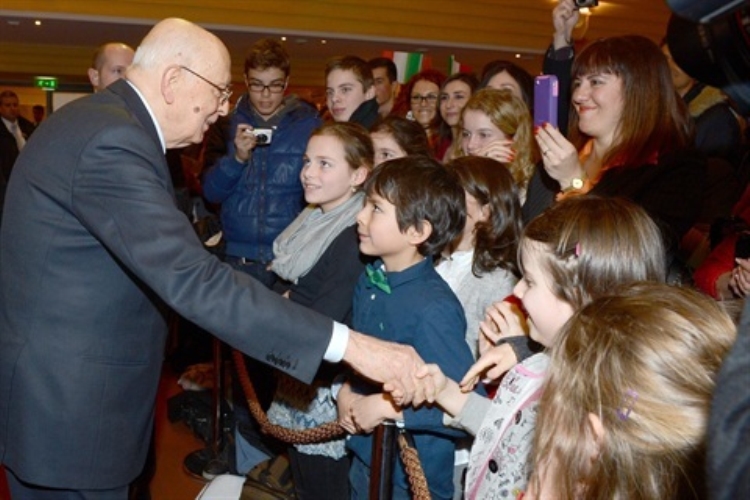 Il Presidente della Repubblica Giorgio Napolitano saluta la collettività italiana e gli studenti di italiano