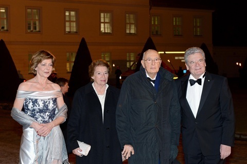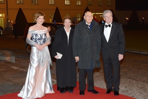 Il Presidente della Repubblica e la Signora Napolitano al Castello di Bellevue con il Presidente Federale Gauck e la Signora Schadt in occasione del pranzo di Stato