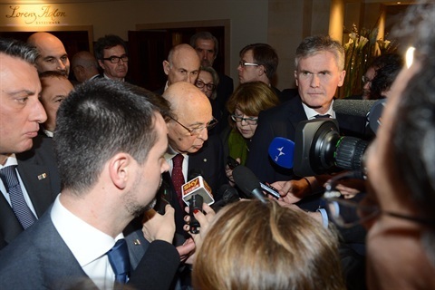 Il Presidente della Repubblica Giorgio Napolitano risponde ad alcune domande dei giornalisti