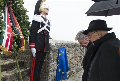 Il Presidente Giorgio Napolitano e il Presidente della Repubblica Federale di Germania Joachim Gauck a Sant'Anna di Stazzema