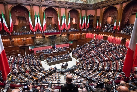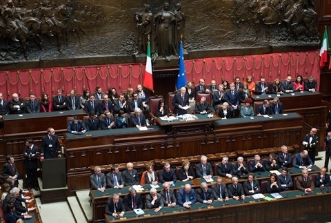Il Presidente Giorgio Napolitano in occasione della cerimonia di giuramento davanti al Parlamento in seduta comune