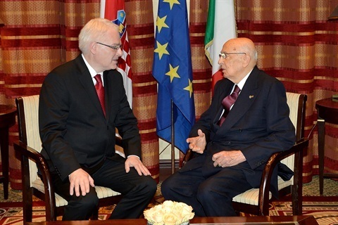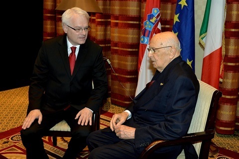 Il Presidente Giorgio Napolitano con il Presidente della Repubblica di Croazia Ivo Josipovic in occasione delle celebrazioni per l'adesione della Repubblica di Croazia all'Unione Europea