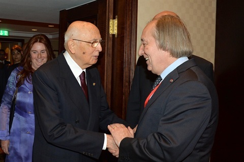 Il Presidente Giorgio Napolitano con l'On. Furio Radin, Presidente dell'Unione Italiana in occasione delle celebrazioni per l'adesione della Repubblica di Croazia all'Unione Europea
