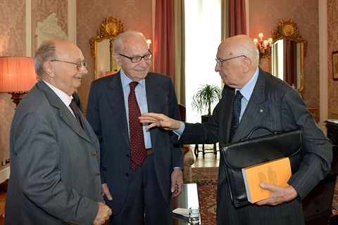 Il Presidente Giorgio Napolitano con l'on. Virginio Rognoni e l'on. Gianni Cervetti