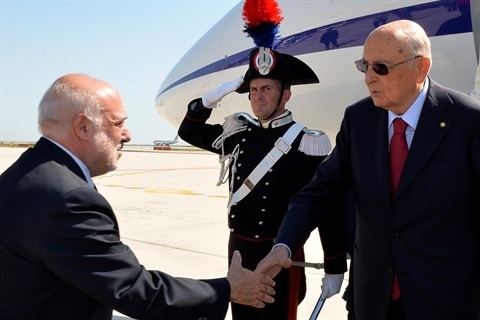 Il Presidente Giorgio Napolitano al suo arrivo a Venezia accolto dal Prefetto Domenico Cuttaia