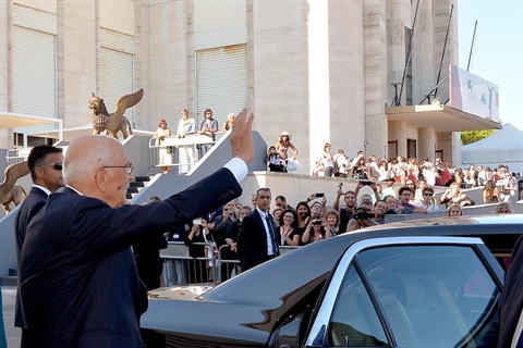Il Presidente Giorgio Napolitano al suo arrivo al Palazzo del Cinema del Lido