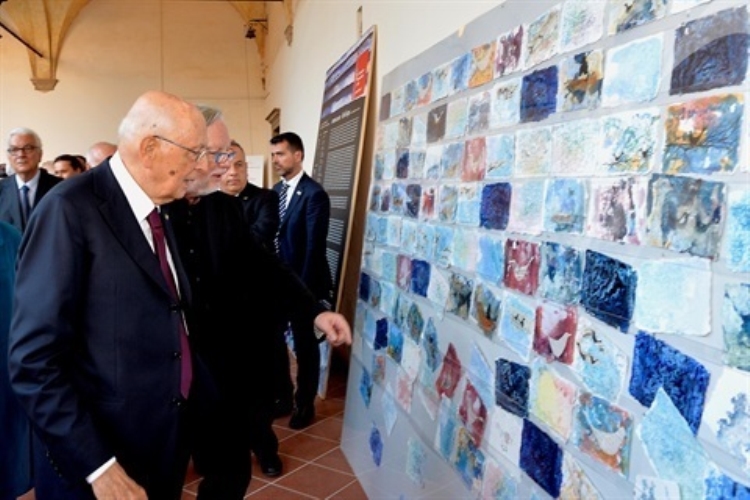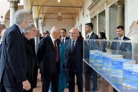 Il Presidente Giorgio Napolitano visita la mostra "I libri d'Acqua" nel Chiostro del Monastero di San Nicolò