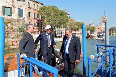 Il Presidente Giorgio Napolitano al suo arrivo all'Arsenale - Campola Tana per la visita della 55° Esposizione Internazionale d'Arte