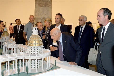 Il Presidente Giorgio Napolitano durante la visita alla 55° Esposizione Internazionale d'Arte dal titolo "Il Palazzo Enciclopedico"