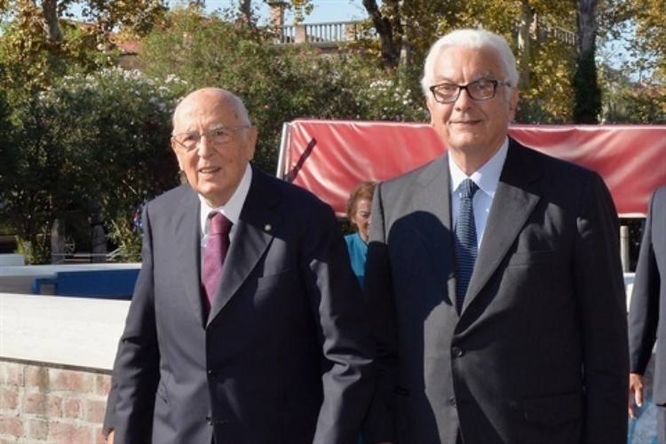 Il Presidente Giorgio Napolitano con il Presidente della Biennale Paolo Baratta al Palazzo del Cinema
