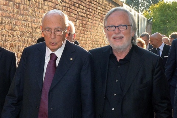 Il Presidente Giorgio Napolitano con Paolo Baratta al suo arrivo all'Arsenale per la visita della 55° Esposizione Internazionale d'Arte dal titolo "Il Palazzo Enciclopedico"