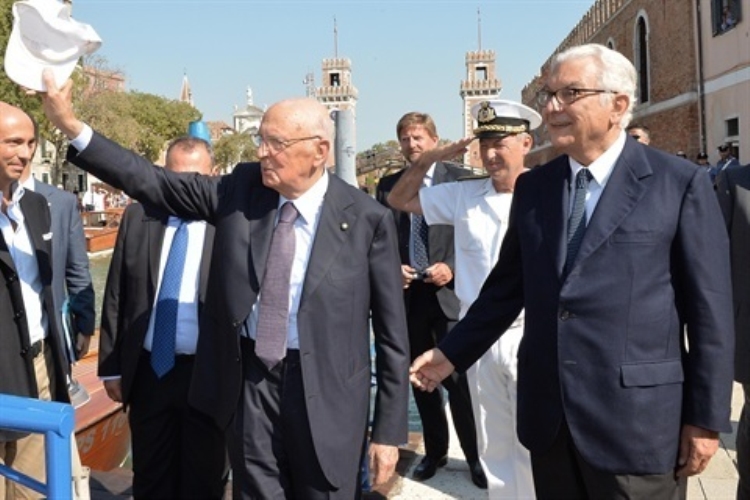 Il Presidente Giorgio Napolitano al suo arrivo a Venezia