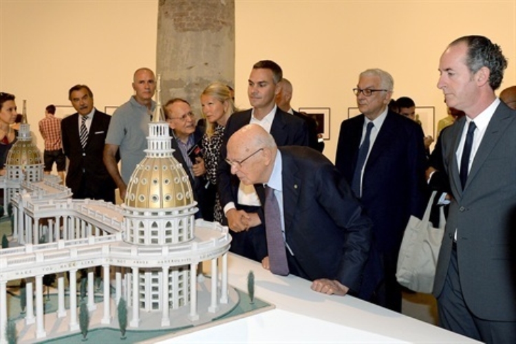 Il Presidente Giorgio Napolitano nel corso della visita alla 55° Esposizione Internazionale d'Arte dal titolo "Il Palazzo Enciclopedico"