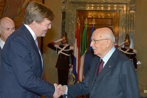 Il Presidente Giorgio Napolitano accoglie le LL. MM. il Re Willem Alexander e la Regina Maxima dei Paesi Bassi al Quirinale
