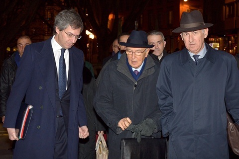Il Presidente Giorgio Napolitano con l' Ambasciatore d'Italia a Parigi, Giandomenico Magliano all'Aeroporto di Strasburgo - Entzheim in occasione della visita al Parlamento Europeo