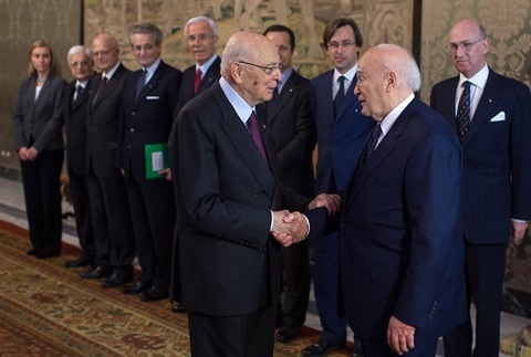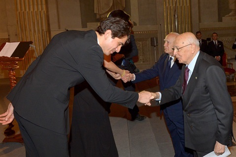 Il Presidente Giorgio Napolitano saluta il maestro Alexandros Kapelis al termine del concerto