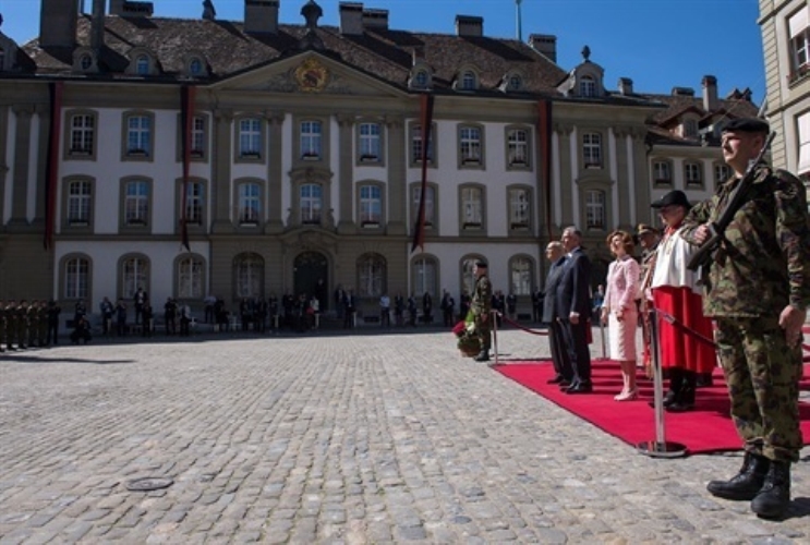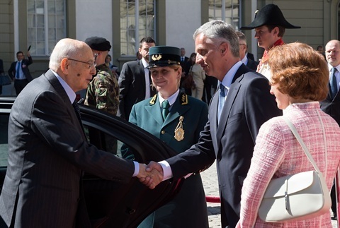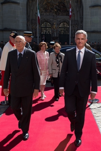 Il Presidente Giorgio Napolitano accolto dal Presidente della Confederazione Svizzera Didier Burkhalter in occasione della Visita di Stato in Svizzera