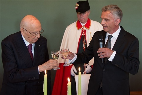 Il Presidente Giorgio Napolitano con il Presidente della Confederazione Svizzera Didier Burkhalter in occasione del Pranzo di Stato