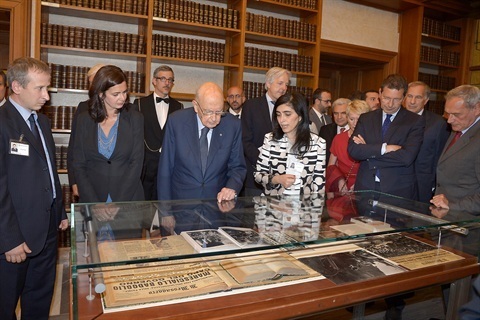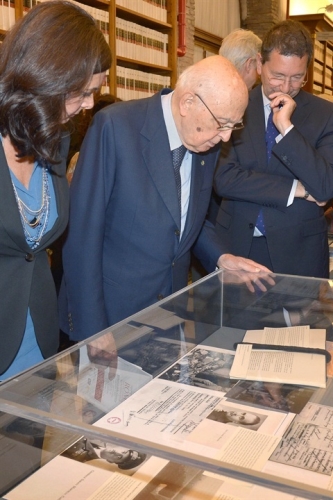 Il Presidente Giorgio Napolitano all'inaugurazione della mostra dal titolo: "1943 - 1944. Roma, dall'occupazione alla liberazione", alla biblioteca della Camera dei Deputati