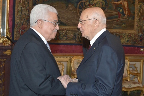 Il Presidente Giorgio Napolitano accoglie il Presidente palestinese Mahmoud Abbas al Quirinale