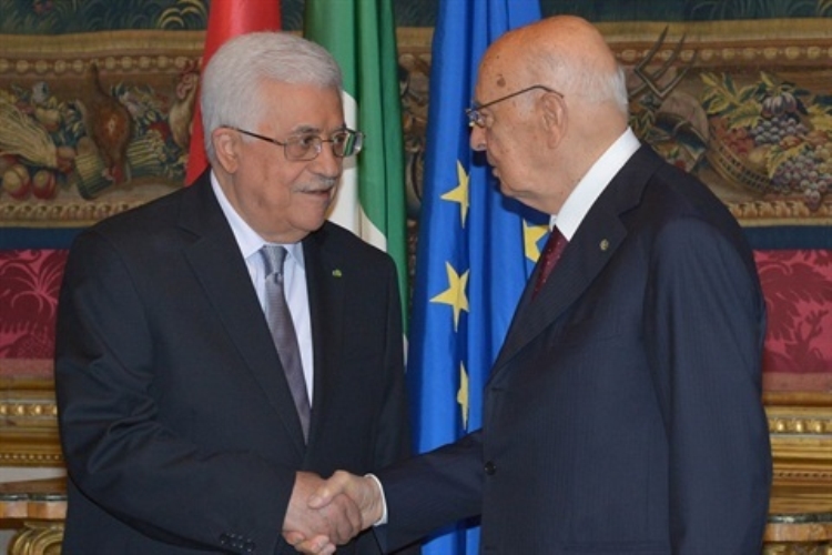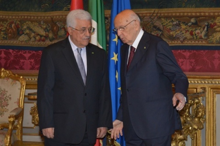 Il Presidente Giorgio Napolitano con il Presidente palestinese Mahmoud Abbas