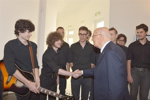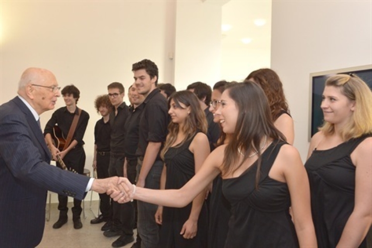 Il Presidente Giorgio Napolitano saluta il Coro giovanile Freevoices