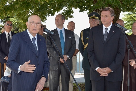 Il Presidente Giorgio Napolitano al Sacrario di Redipuglia assiste insieme al Presidente Croato e al Presidente Sloveno alla "Messa da Requiem" di G. Verdi dedicata alle vittime di tutte le guerre, diretta dal M° Muti