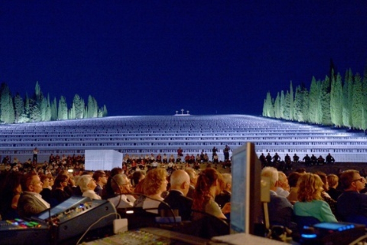 Una panoramica del Sacrario di Redipuglia nel corso del concerto diretto dal Maestro Riccardo Muti e dedicato alle vittime di tutte le guerre