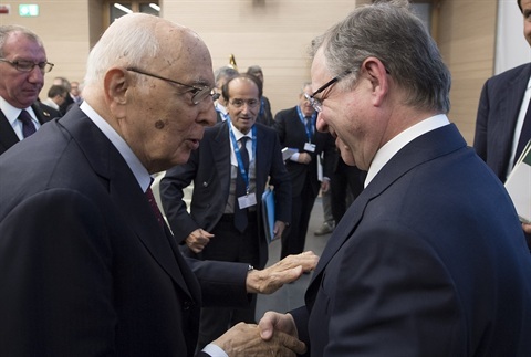 Il Presidente Giorgio Napolitano alla sessione di chiusura "Accounting for the long term costs of the recession", nell'ambito del Forum Internazionale organizzato dall'Istituto Einaudi per l'Economia e la Finanza e dalla Banca d'Italia