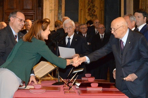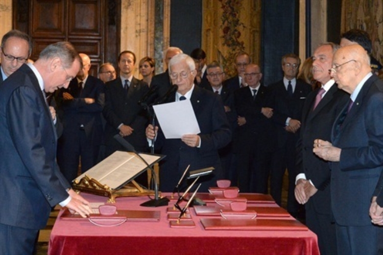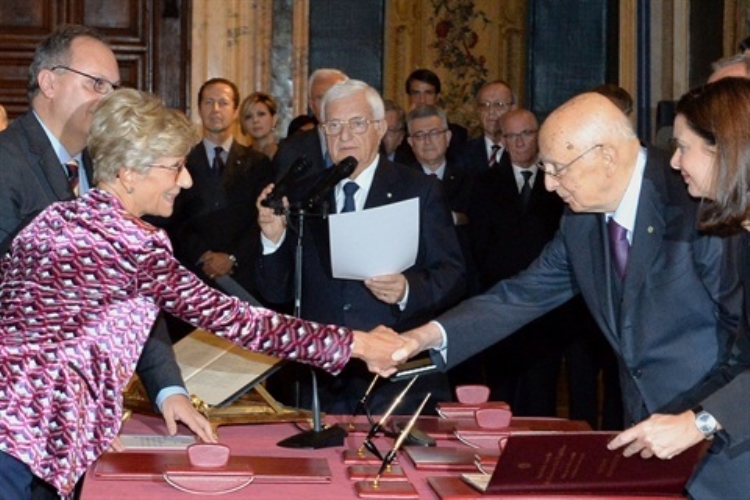 Il Presidente Giorgio Napolitano durante la cerimonia di giuramento dei nuovi giudici della Corte Costituzionale. Nella foto la prof.ssa Daria de Pretis